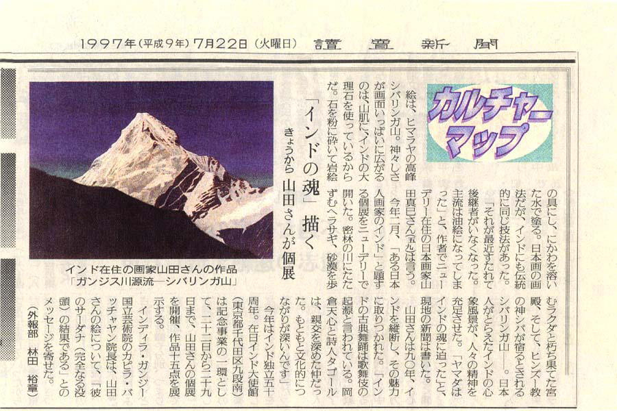 讀賣新聞(1997年7月22日) 「インドの魂」描く きょうから山田さんが個展 |