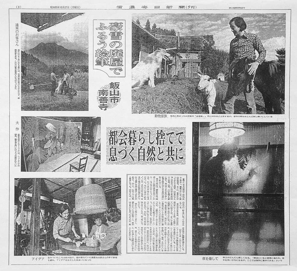 | 信濃毎日新聞(1980年10月27日) 都会暮らし捨てて息づく自然と共に 豪雪の廃屋でふるう絵筆 |